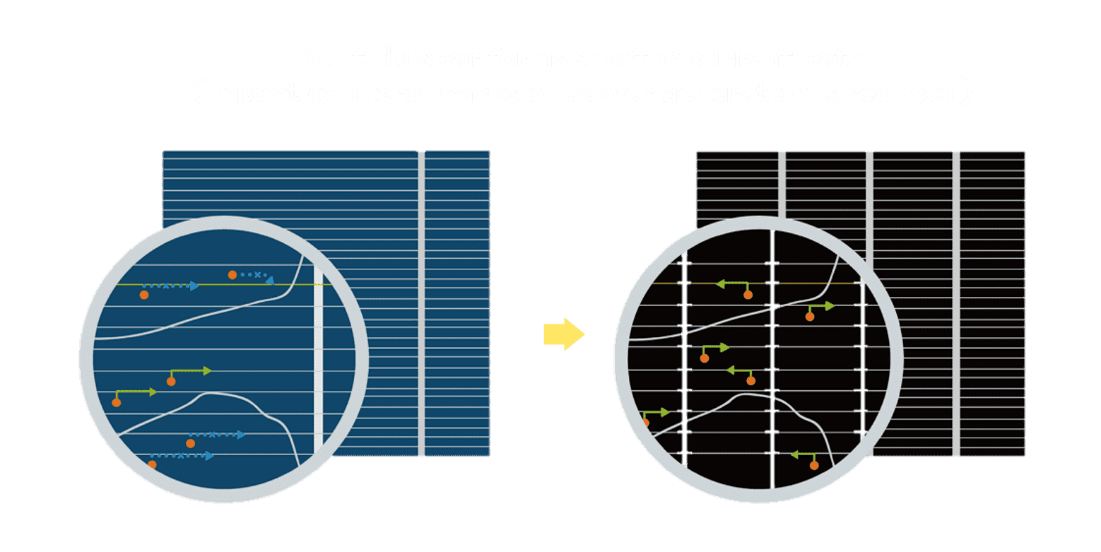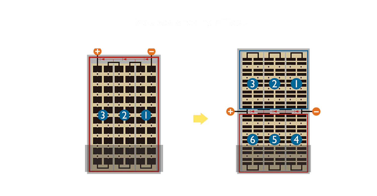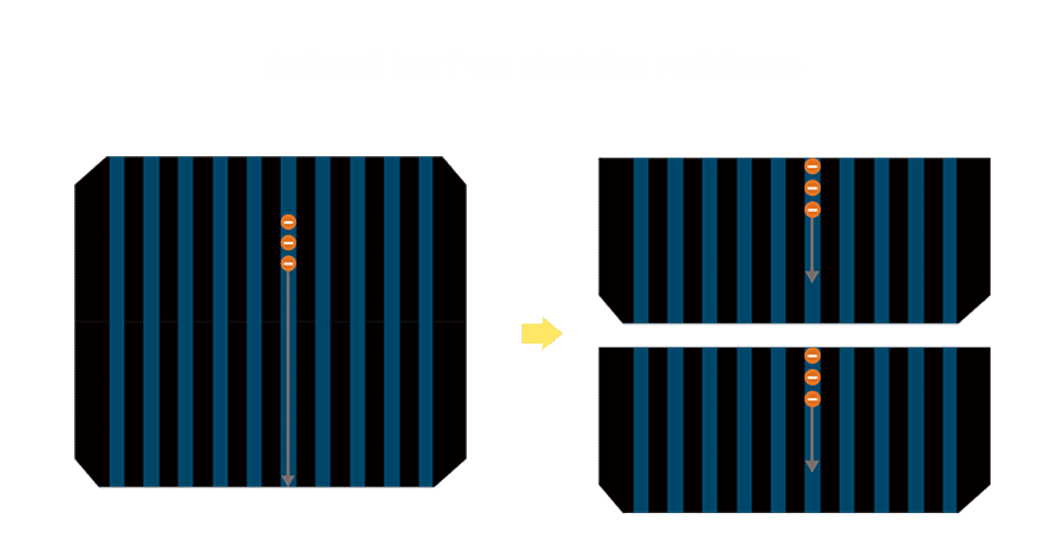 - 结合半切电池,,降低遮阴影响、、、、提升模组抗隐裂能力、、、并减少电阻损耗,,,进一步提升模组发电效能。。